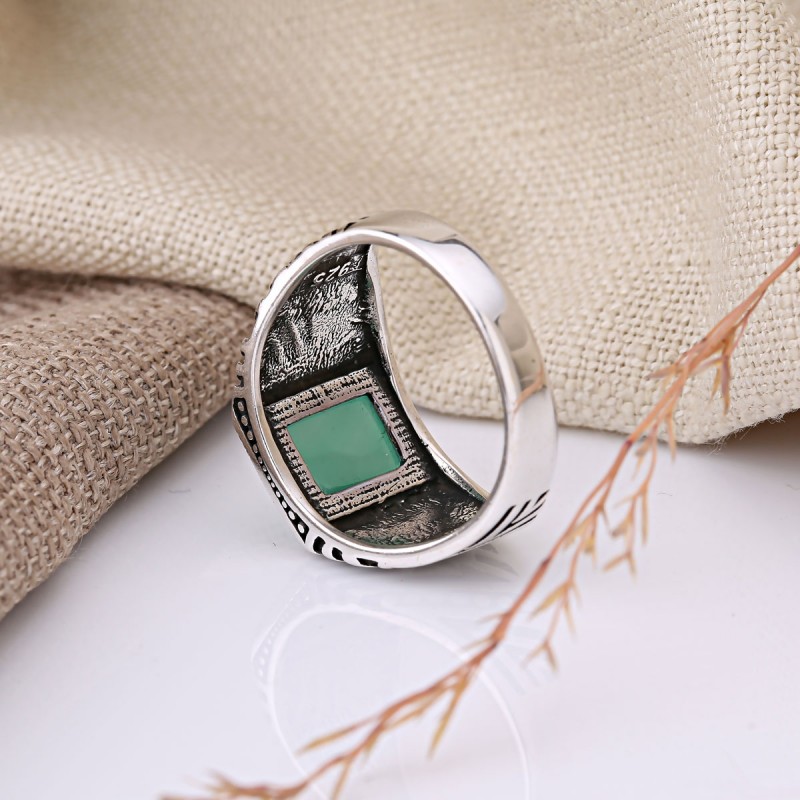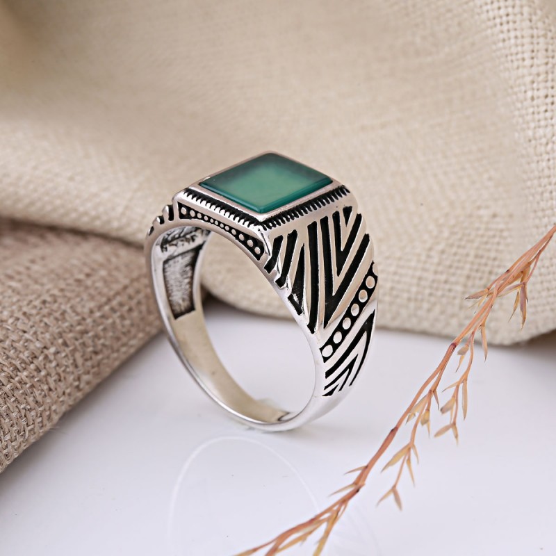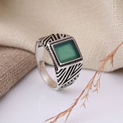 Herrring gjord av silver 925 Chrysopras. Herrring gjord av svärtad 925 silver med stora krysopras. Varje man vill ha sin egen snygga accent, en dyr sak som understryker statusen.