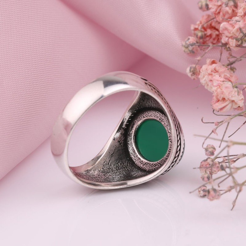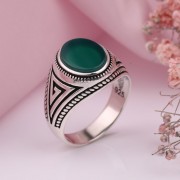 Herrring gjord av svärtat 925 silver med stor krysopras. Varje man vill ha sin egen stilfulla accent, en dyr sak som framhäver status.