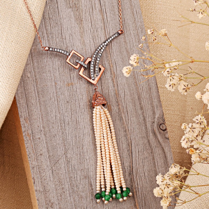 925 Silverkedja i orientalisk stil med pärla, krysopras och zirkoniet