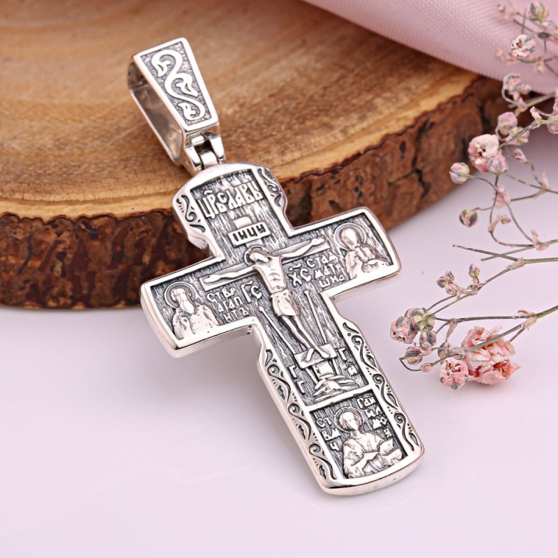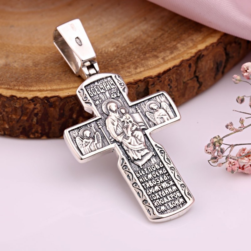 Silver bröstkors med krucifix av svärtat 925 sterling silver! Det finns en bön ingraverad på baksidan. Repar inte när den bärs.
