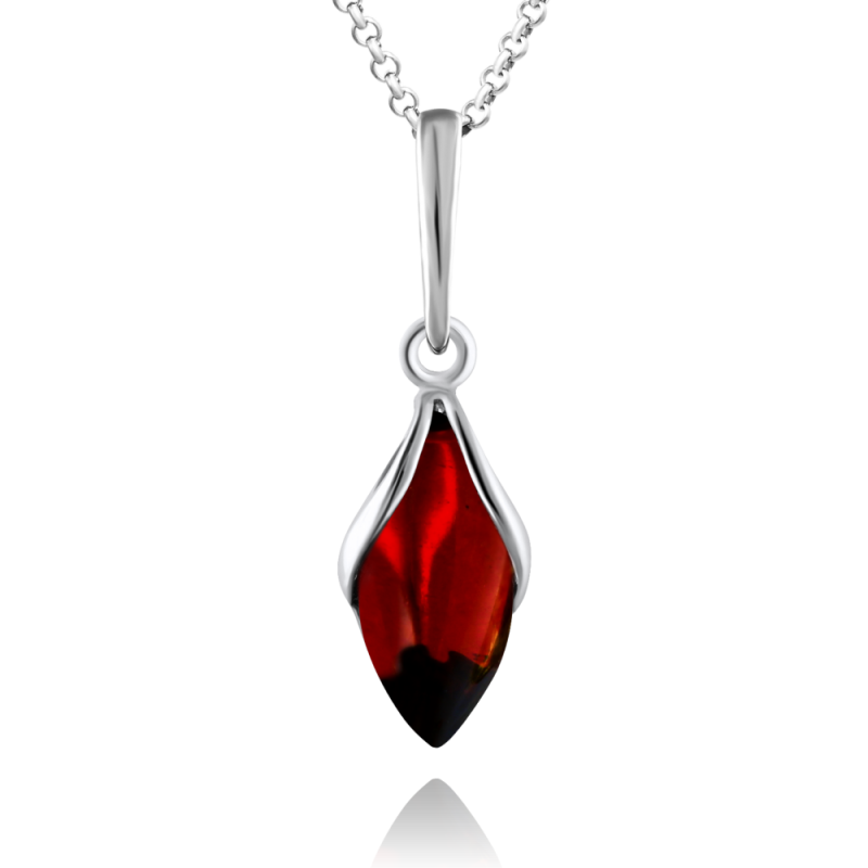 Ett charmigt hängsmycke gjord av 925 silver och unik bärnsten, med denna fantastiska "bit av solen" som leker med alla nyanser av rött. En unik möjlighet att betona din individualitet, förmedla bilden av femininitet, solsken och ömhet. Rhodiumpläterad!