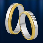 Tvåfärgad ring gjord av gult/vitt guld 585° (matt / glänsande) med diamanter (3 x 0,005 ct)