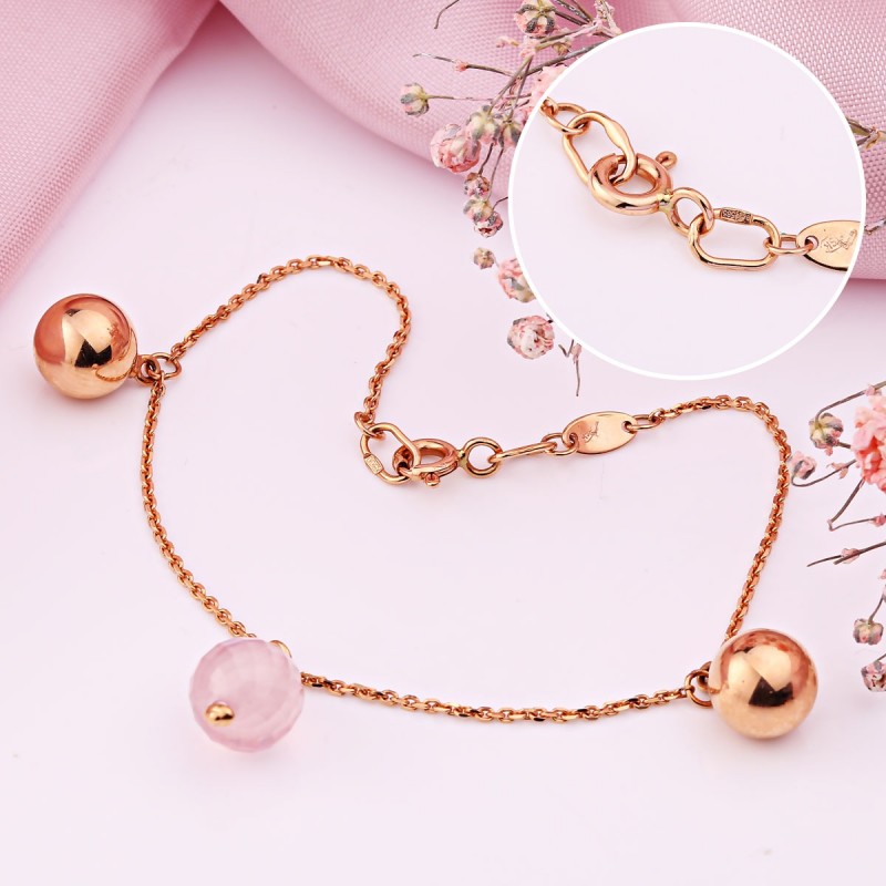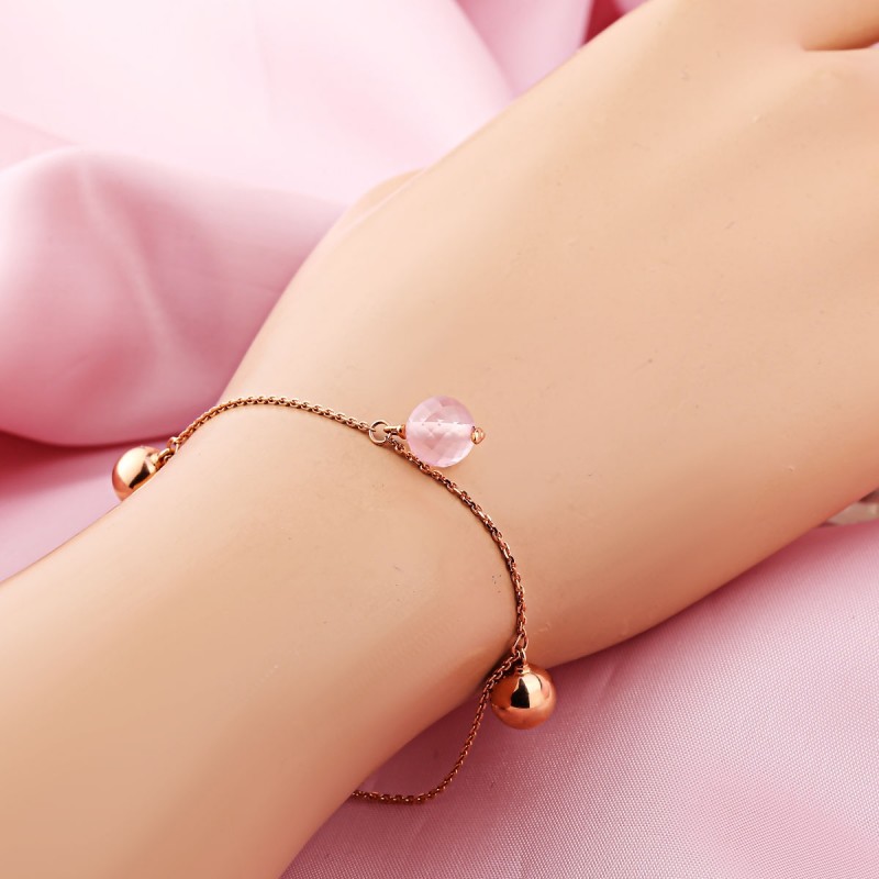 sokolov armband tillverkat av rött guld 585 ° rosa kvarts. Det graciösa armbandet gjord av 585 rött guld med mousserande diamantslipning och rosa kvarts. Fästen gjorda av guld ställer in den nödvändiga accenten på bilden och uppmärksammar tillbehörens rikedom och lyx, eftersom guld är vackert, snyggt, elegant och dyrt. Passar både en solid dam och en ung kvinna.