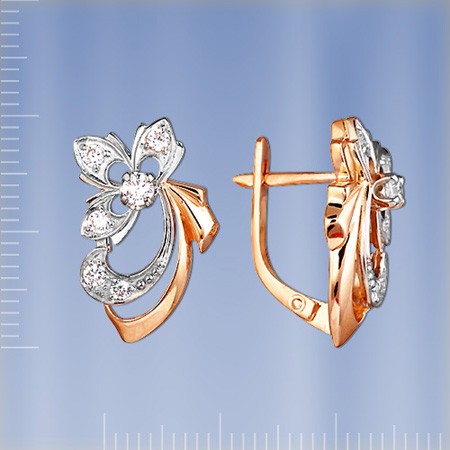 Örhängen gjorda av ryskt rött/vitt guld 585° med fianiter Ø 2 mm. Höjd ca 20 mm. Bredd ca 13 mm.