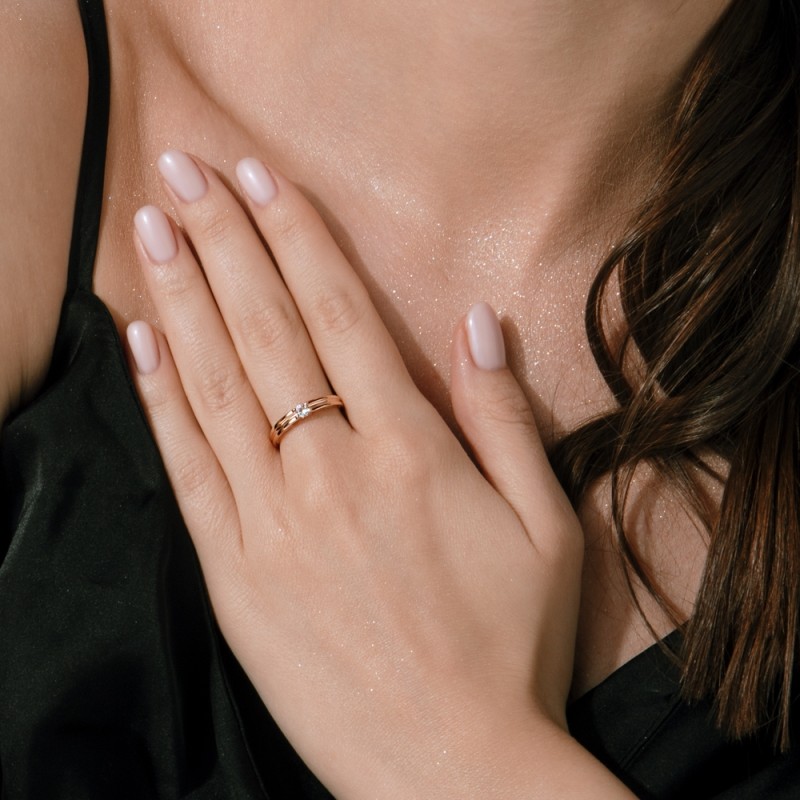Köp damring guld zirconia online. Denna ring gjord av 585 rött guld förkroppsligar reducerad elegans på högsta nivå. Tydliga linjer och en balanserad form skapar en harmonisk helhetsbild utan överbelastning.