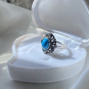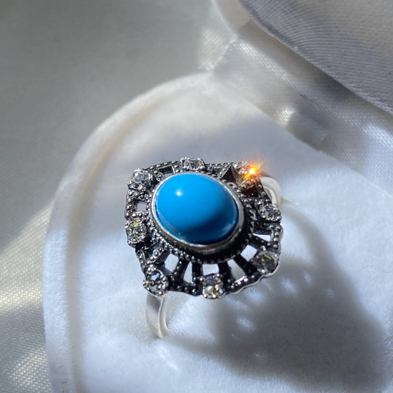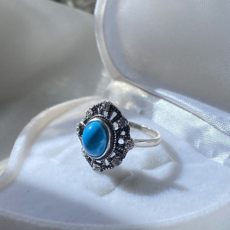 Originalring med charmig turkos och gnistrande zirkoner i en vacker silverram gjord av svärtat 925 silver. En underbar present till din älskade som kommer att framhäva hennes unika skönhet!
