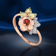 Charmig ring gjord av 925 silver, dekorerad med zirkoniumoxid, granat och krysolit.