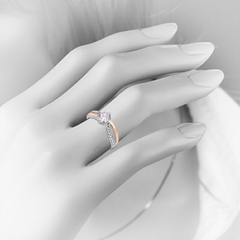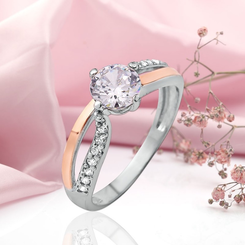 En underbart delikat ring med en förtrollande gnistrande zirconia. Ringen ser enkel och elegant ut i en vacker ram i 925 sterling silver med 375 roséguldaccenter. Denna dekoration har ett uppdrag att förmedla de ljusaste och högsta känslorna till sin ägare! Denna fantastiska kombination av elegans, lätthet och individualitet ger dekorationen speciell charm och inspiration.