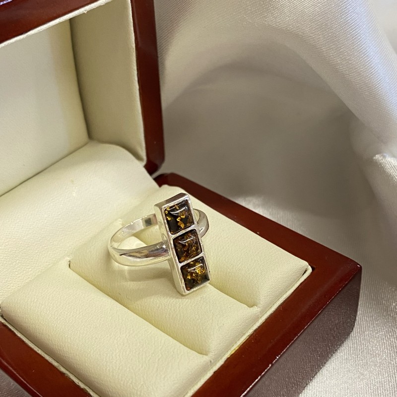 Elegant ring gjord av 925 silver, dekorerad med bärnsten, med denna fantastiska "bit av solen", i alla nyanser av konjakfärg, kommer att glädja och glädja dig tack vare sin skönhet! Ringen kommer perfekt att betona ömheten, charmen och naturligheten i din skönhet och uppmärksamma dina händers femininitet.
