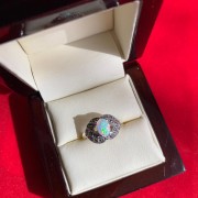 Insats: Opal oval 7,0 x 5,0 mm; Marcasite Ø 1,5 - 2,0 mm.