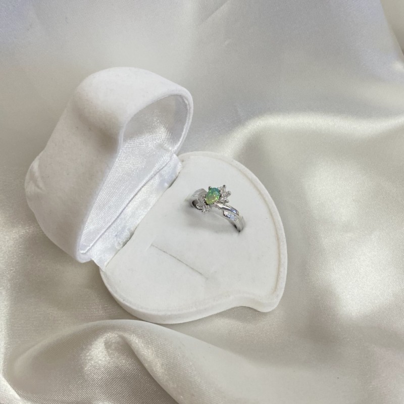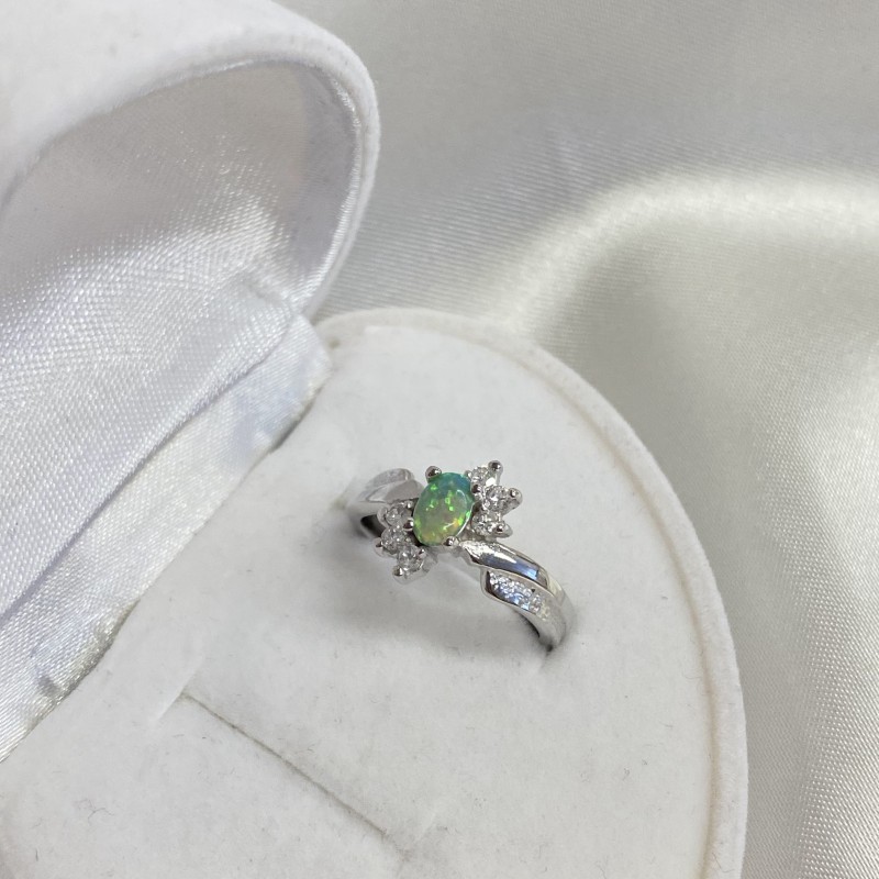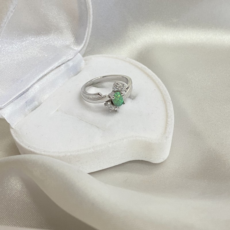 Vacker ring gjord av 925 sterling silver med förtrollande grön opal och gnistrande zirconia-insatser. En sådan ring kommer att betona förfining av smak och få dig att känna dig som en riktig drottning.
