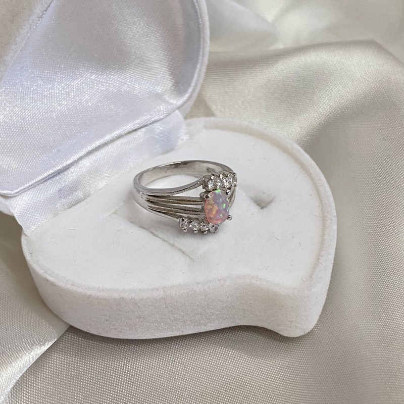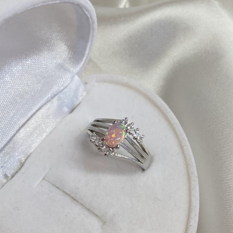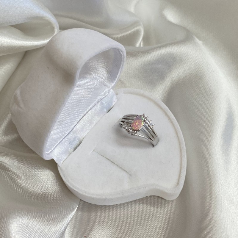 Vacker ring gjord av 925 sterling silver med förtrollande rosa opal och gnistrande zirconia-insatser. En sådan ring kommer att betona förfining av smak och få dig att känna dig som en riktig drottning.