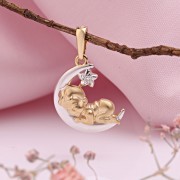 SOKOLOV hänge gjord av 585 vitguld/gult guld med inlägg av förtrollande diamanter! Vitt guld framhäver med fördel diamanternas skönhet och unika karaktär. Kombinerat guld skapar en harmonisk färgallians och den rätta inramningen för vackra och dyra stenar. Guld är vackert, snyggt, chict, dyrt. Guldprodukter skapar den nödvändiga accenten i bilden och uppmärksammar tillbehörens rikedom och lyx. Om du vill betona femininitet, nåd, leende och skönhet, då är en sådan gåva för dig. Rhodiumpläterad!