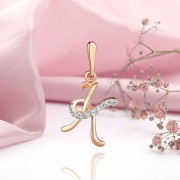 Charmigt, graciöst hänge i form av bokstaven "K" i 585 rött och vitt guld med insatser gjorda av gnistrande zirkoner.
