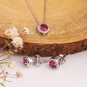 925 Renkli Zirkonya ile Gümüş Seti - Kadınsı bir görünüm için kolye ve küpe.