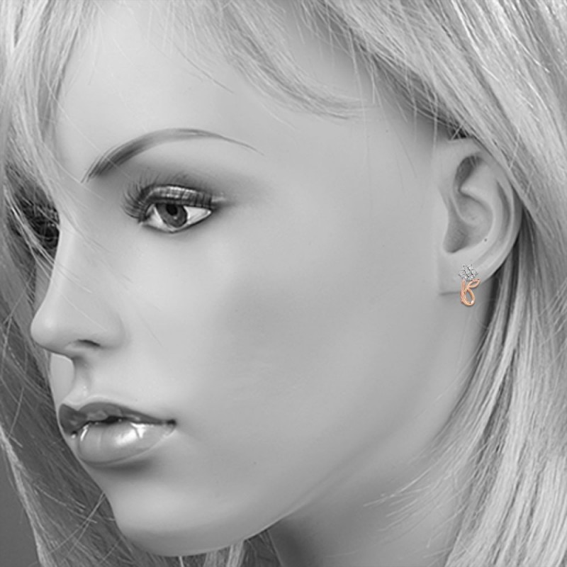 585 kırmızı altından yapılmış, pırlantalı zarif altın küpe.