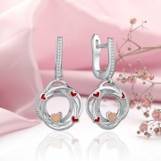 925 gümüş ve 375 altından yapılmış, kırmızı mine ile süslenmiş büyüleyici küpeler. Kırmızı renk sevgi ve neşeyle ilişkilendirilir ve hayranlık dolu bakışları üzerine çeker. Sahiplerinin inceliğini, kadınlığını ve çekiciliğini mükemmel bir şekilde vurgularlar.