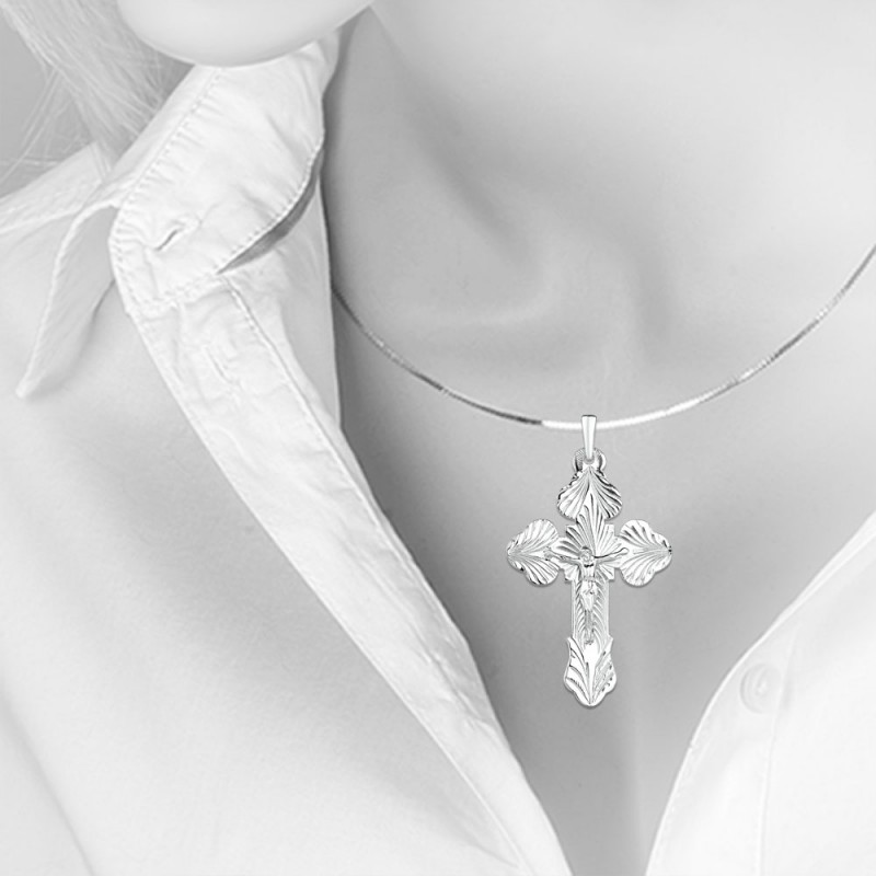 "Kaydet ve koru" yazan, elmas kesim 925 gümüşten yapılmış haçlı gümüş göğüs haçı! Giyildiğinde çizilmez.