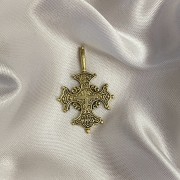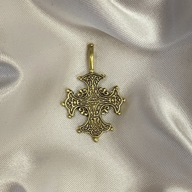 Siyah, güçlü bir kordon üzerinde bronz kolye simgesi.