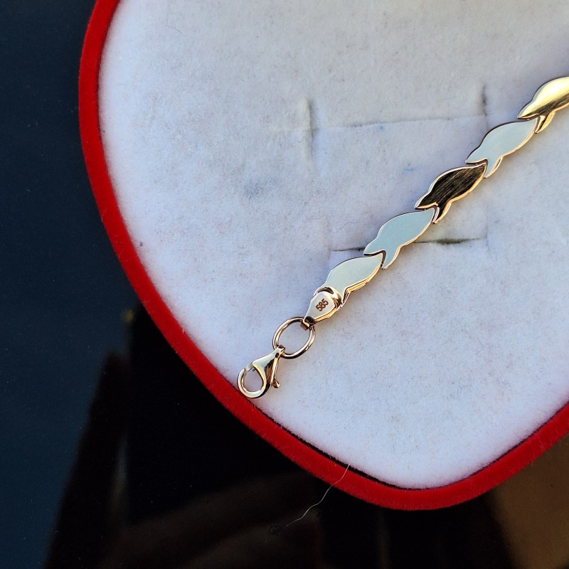 Altın bilezik Rus altını 585 Elmas kesimli, beyaz altın vurgulu, 585 standardının klasik pembe altından yapılmış mükemmel bilezik. Bileğiniz için harika bir dekorasyon. Bu ürün, gelişmişliği ve güçlü bir stil duygusunu öne çıkarır!