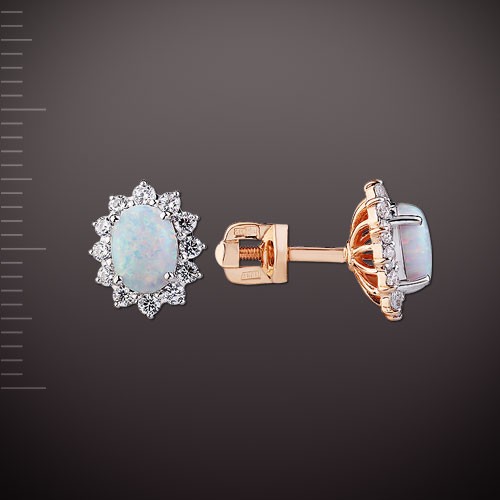 Opal süslemeli (7,0 x 5,0 mm) 585° kırmızı altından yapılmış güzel saplama küpeler. Bu göz kamaştırıcı küpeler, güzelliği ve zarafetiyle sizi şaşırtacak.