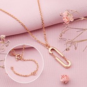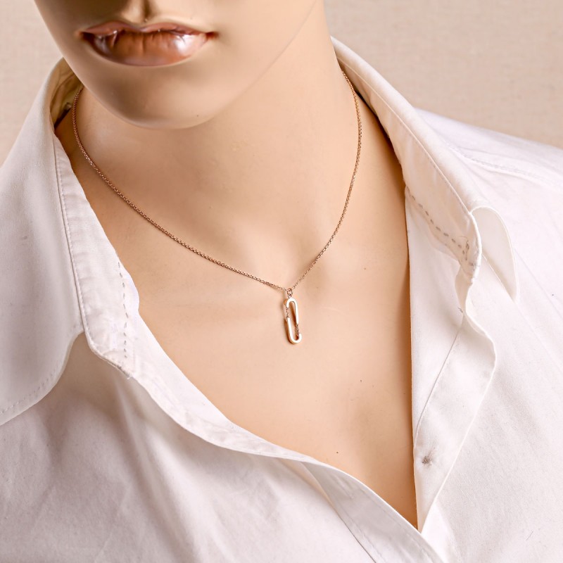 Kırmızı altın kolye 585 satın alın. 585 kırmızı altından yapılmış, modern ve minimalist tasarıma sahip zarif kolye. Merkezi unsur, takıya modern ve mimari bir karakter kazandıran şık bir bağlantıdır.