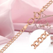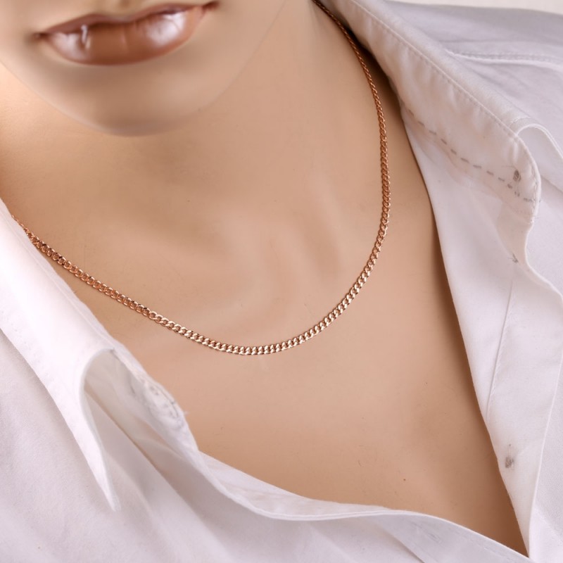 14 ayar kırmızı altından yapılmış, elmas kesimli bordür zinciri. Altın zincirler görüntüde gerekli vurguyu yaratır ve aksesuarların zenginliğine ve lüksüne dikkat çeker çünkü altın güzel, şık, şık ve pahalıdır.