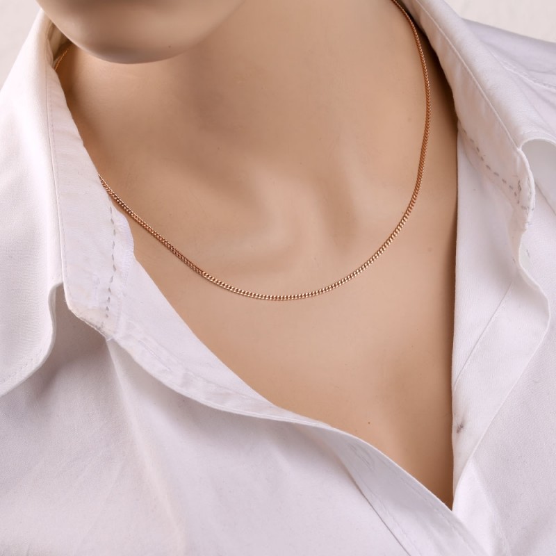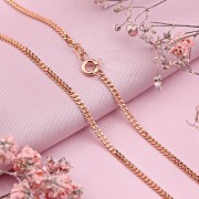 14 ayar kırmızı altından yapılmış, elmas kesimli güzel bordür zinciri. Altın zincirler görüntüde gerekli vurguyu yaratır ve aksesuarların zenginliğine ve lüksüne dikkat çeker çünkü altın güzel, şık, şık ve pahalıdır.