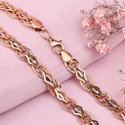 14 ayar kırmızı ve beyaz altından yapılmış, şık bir dokumadan yapılmış güzel kolye! Zincirin halkaları ışıkta mükemmel bir şekilde parlıyor ve ışıldıyor! Bu dokumadan elde edilen ürün bireyselliğinizi ve benzersizliğinizi mükemmel bir şekilde vurgulayacaktır!