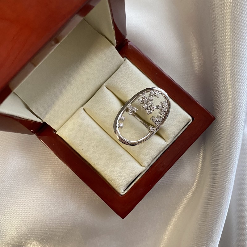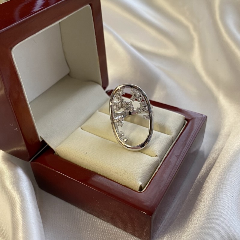 925 gümüşten yapılmış güzel gümüş çerçeveli, büyüleyici zirkonlu hoş narin yüzük. Sevdiğiniz kişi için onun eşsiz güzelliğini vurgulayacak harika bir hediye!