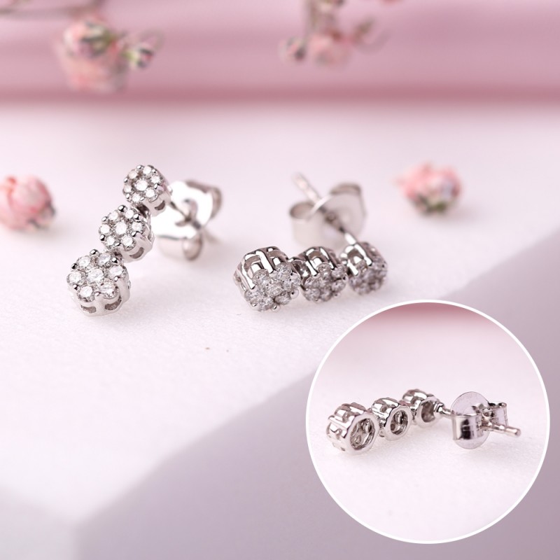 Gianni Lazzaro tasarımı, pırlantalı 750 beyaz altından yapılmış zarif beyaz altın küpe.